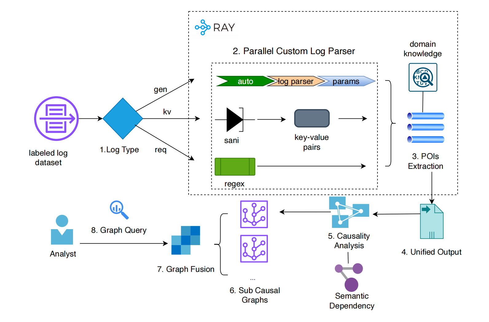 Unified Parallel Semantic Log Parsing based on Causal Graph Construction for Attack Attribution