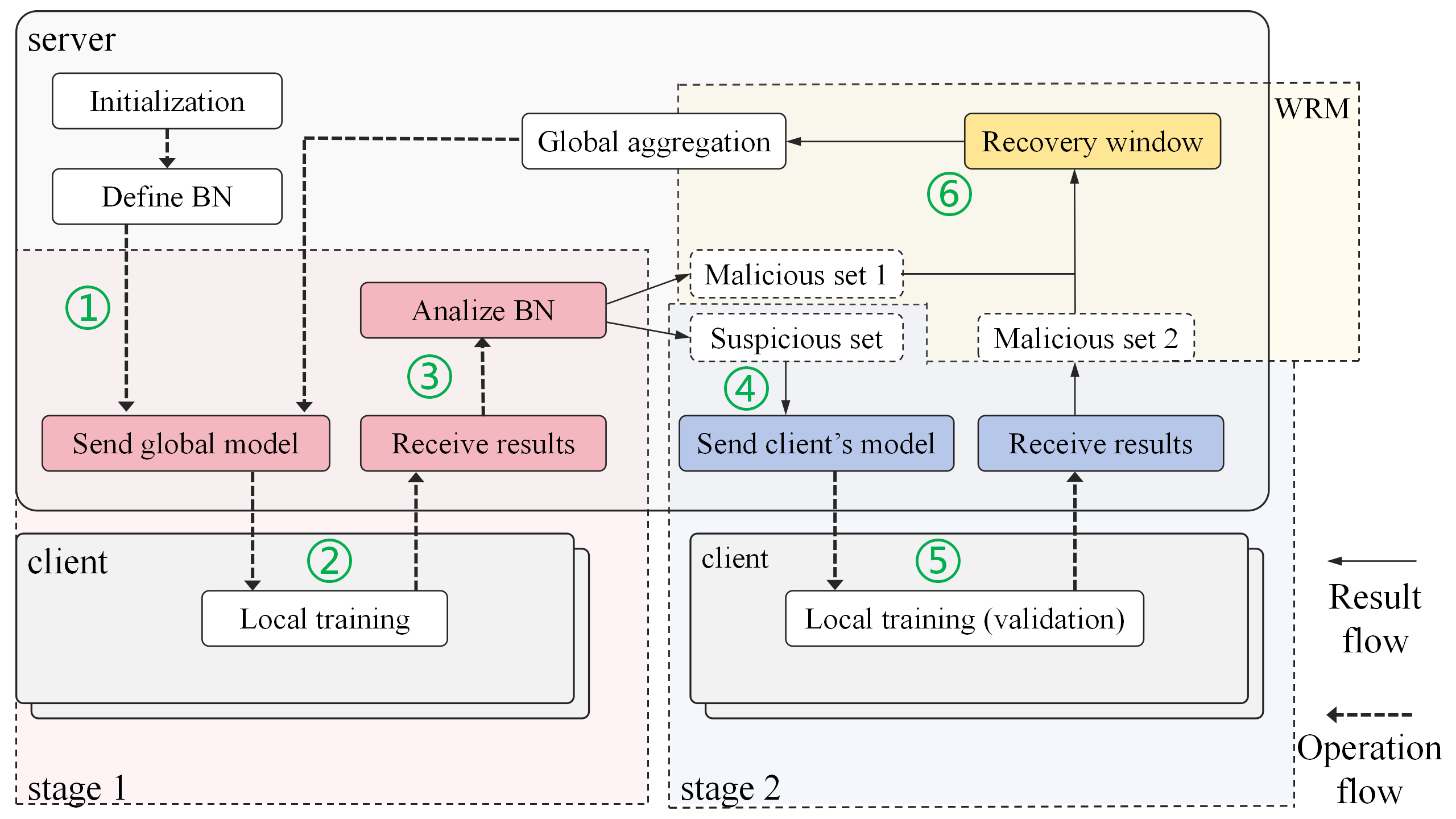 Federated learning (FL) has emerged as a popular paradigm for collaborative model training across decentralised data clients while preserving data privacy. However, FL is inherently vulnerable to poisoning attacks. As these attacks grow more sophisticated, various defence mechanisms are proposed to mitigate the threats. Most existing defences adopt a single perspective on Byzantine client detection resulting in both false positives and false negatives. We propose FLgym, a two-stage framework for Byzantine-resilient FL that integrates three components: a model similarity-based detection mechanism, a validation mechanism based on similarity estimation of clients’ local data, and a weight recovery mechanism for identified Byzantine clients. Extensive experiments show that FLgym consistently outperforms state-of-the-art baselines achieving the highest model accuracy, true positive rate of 90.95%, and the lowest false positive rate of 6.3%.